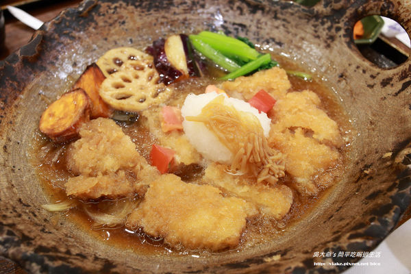 而上面的蘿蔔泥,跟醬汁攪拌之後,有稍微解膩的功能