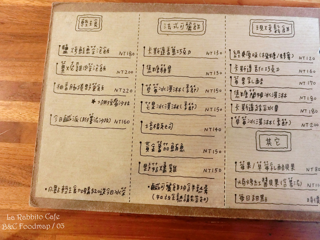 當天因為是平日前往,所以人潮沒有很多,但反而也多了一種悠閒的感覺,坐在窗邊的位置,店裡採光很好,一切的擺設都是簡單乾淨,沒有了多餘的綴飾,反而更吸引人。菜單只有兩頁,提供的餐點分別是以簡單的日式輕食、可麗餅、鬆餅為主,另外在下午一點之前有提供早午餐。