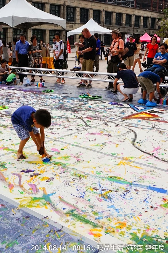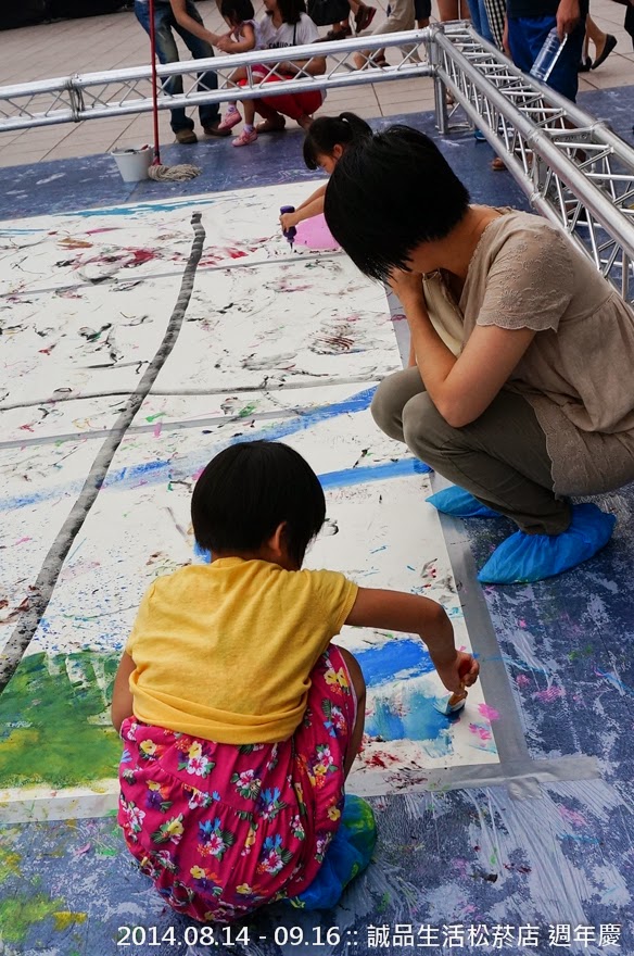 站在一旁看到好多小朋友拿著大刷子就這樣刷在畫布上,臉上是滿滿的笑容,看得令人覺得心都暖暖的了!