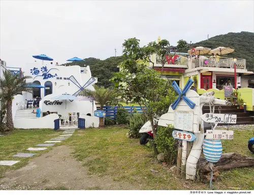 靠近餐廳研究菜單跟美麗裝潢外觀時,聽到上面傳來聲音,老闆很可愛就站在二樓閣樓外頭招呼我們,餐廳供應蜜糖吐司、鬆餅、pizza、義大利麵等,價位大約150上下,為了把握時間,先入內點餐後,我們趁著等餐時間先到外面海灘走走。