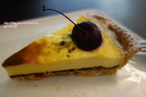 看起來很可口的櫻芙塔中間黃色部分口感就像在吃布丁一樣,下面的派皮相千層派一的的酥脆