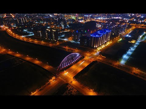 橋上變幻的光影,使夜晚的新月橋顯得浪漫