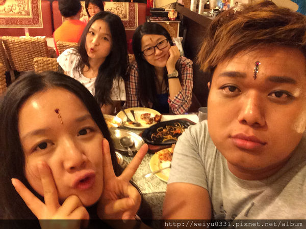 可愛的店家桌上還有提供印度貼紙,馬上貼在額頭就可以化身印度人,連電視都不斷播著印度style的舞蹈,簡直整個人入境隨俗。