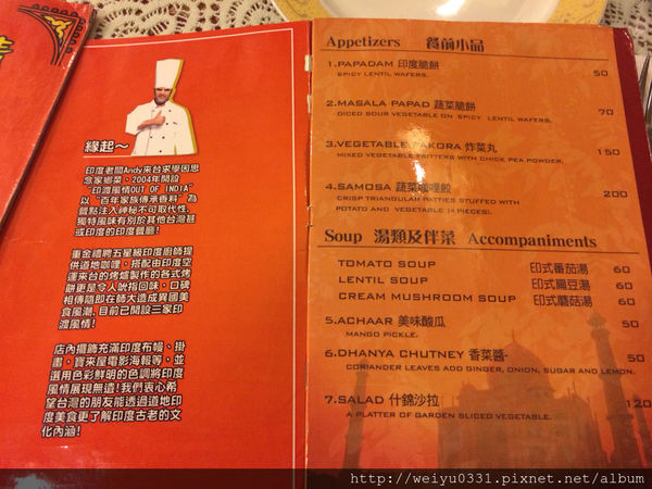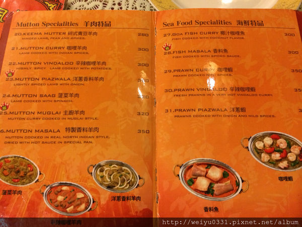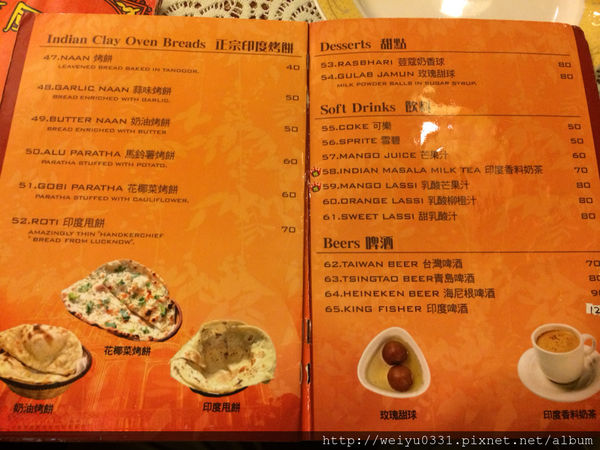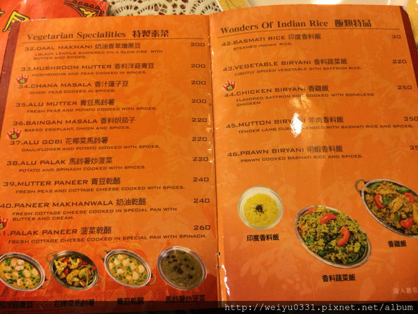 接著,我們來看看菜單的部分,選擇很多樣,大部分就是有汁液的東西,所以誠心建議你們一定要點個香料飯或是甩餅,不錯不錯。