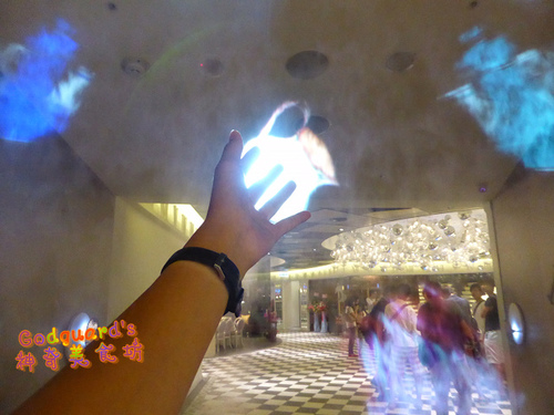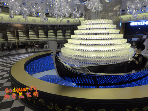 每過一段時間,香檳瀑布就會有燈光的變換、秀出精彩的表演^0^