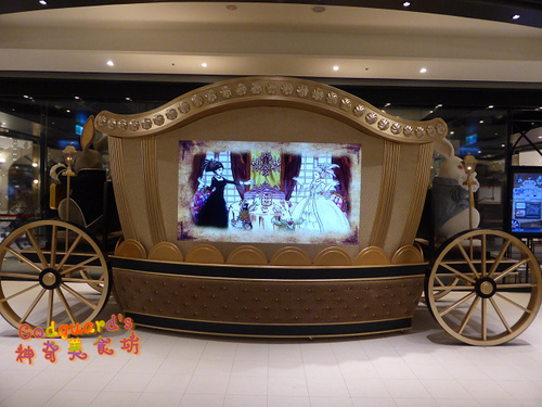 一上四樓,首先看見的是一台童話馬車,中間的螢幕播放著甜蜜王國的背景故事...