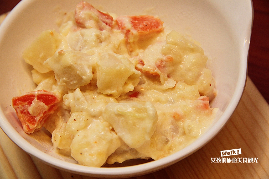 融合奶油和蒜香濃郁風味口感的沙拉,加上馬鈴薯塊跟紅蘿蔔塊拌合再一起~