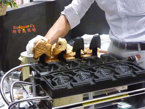 燒出來的鯛魚中間有個空洞、可以當作冰淇淋的甜筒一般使用