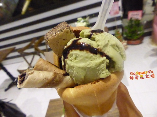 最後還會在上面放上一球冰淇淋、加一些餅乾/水果裝飾,鯛魚燒聖代就大功告成^0^
