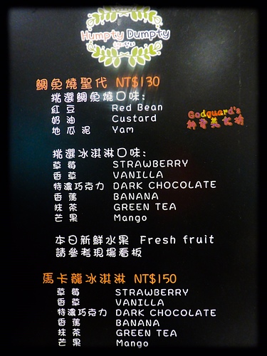 Humpty Dumpty的鯛魚只有一個品種(口味),而MENU上的鯛魚燒口味則是指填餡