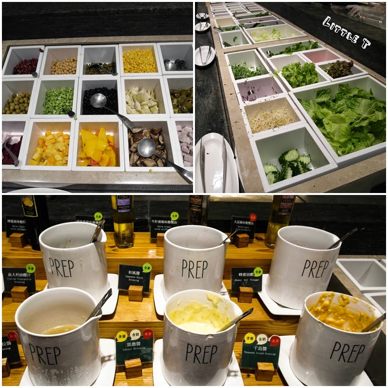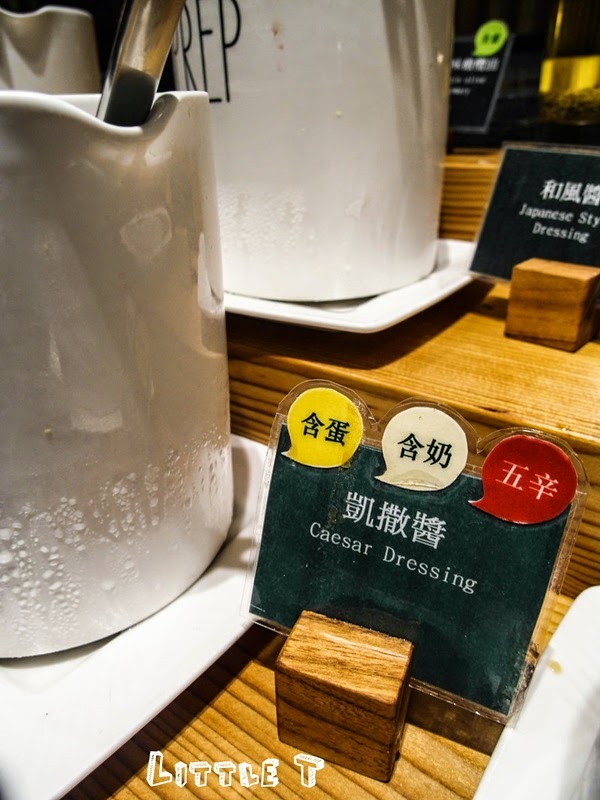 果然匯的沙拉吧是我看過最多種類的沙拉吧, 大概有二十幾種可以選吧! 有些還是比較少見的蔬菜,而調味醬汁更是從常見的和風醬、千島醬到較少見的摩洛哥沙拉醬都有,皆可依個人喜好調味