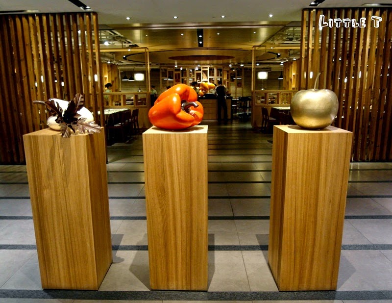 一進門就看到白蘿蔔、紅椒、蘋果的裝飾品佇立在門口,有種強調蔬食的意象