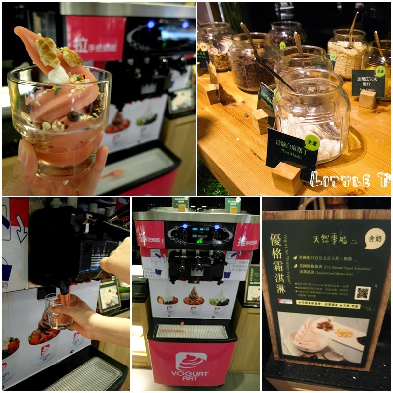 一大台的優格霜淇淋機讓你想吃多少就擠多少,有草莓奇異果雪酪霜淇淋和歐式原味優格霜淇淋兩種口味,再擠霜淇淋的時候杯子不用移動,因為霜淇淋會自己轉XD