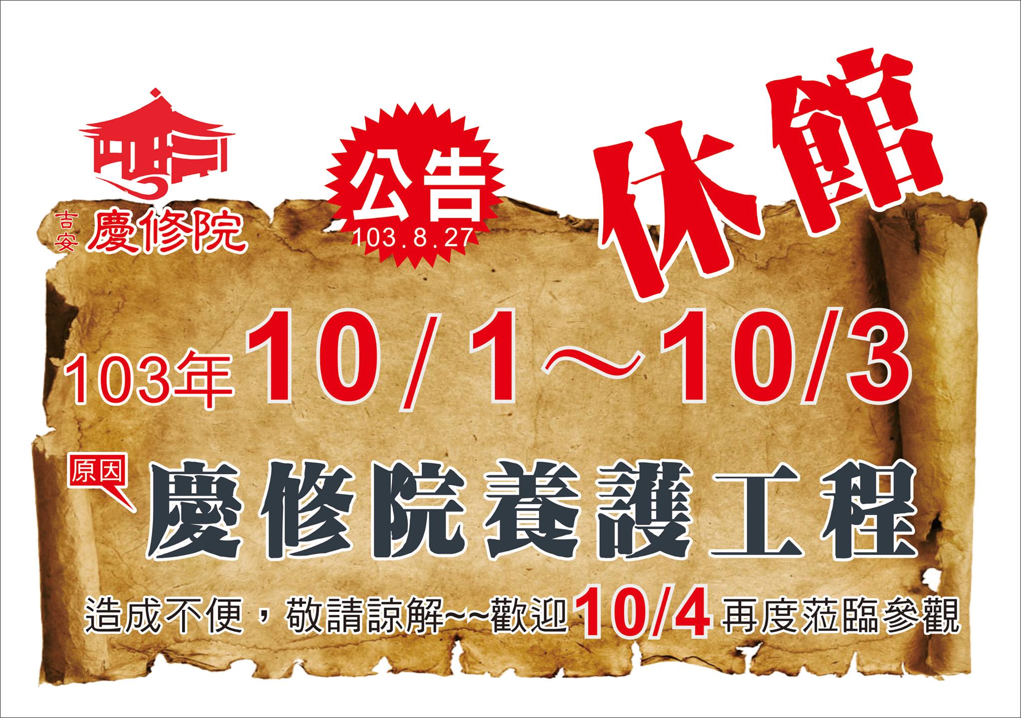 最後整理一下吉安慶修院的參觀資訊