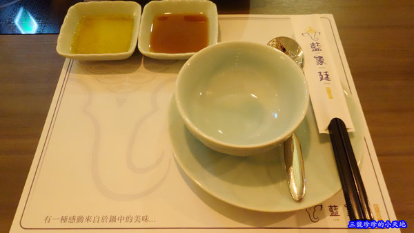 在我們一坐定之後(用餐限時的時間也是從這裡開始計算喔!),服務的小姐先跟我們解說放在桌上的這兩種醬料: