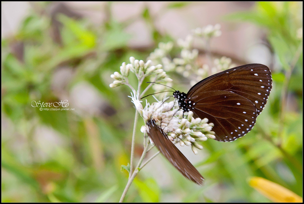 ▼ 另外古厝門口也有不少蝴蝶翩翩飛舞的畫面,好不容易找到停留在花朵上的蝴蝶。