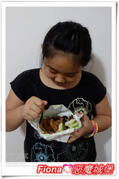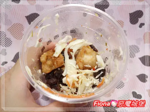 Fiona看到一大盒的「香香蔬果吧」非常開心,立刻就叉了塊「香香炸雞」入口,炸到酥脆的外皮加上入味Q彈的雞肉,吃起來完全不會有油膩感,非常鮮嫩多汁,超好吃的!!