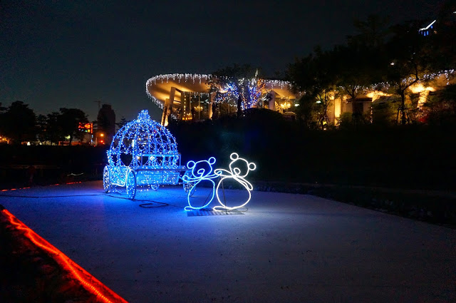 與白天不同的呈現出的南瓜馬車,更也在午夜之際帶著辛蒂蕾拉在十二點前完成他美麗的夢想。