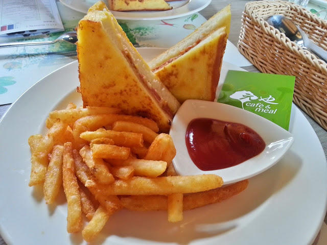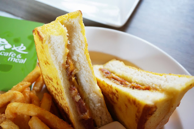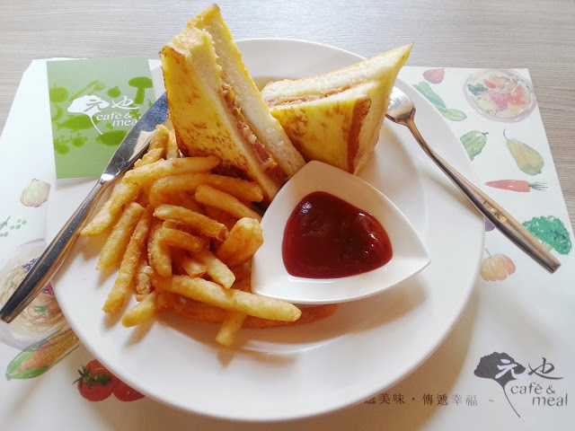 這次搭配到的更是在元也的臉書上有看到的特色餐點,花生醬火腿乳酪黃金厚片與薯條。
