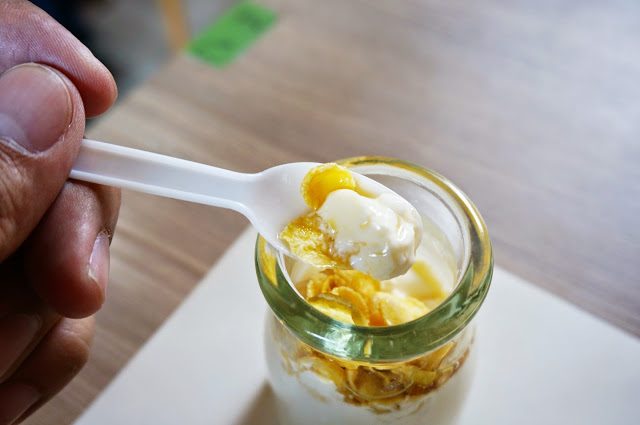 雪白的鮮奶酪搭配上金黃脆片,視覺上就覺得蠻有趣的。