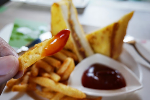黃金色調的搭配組合加上鮮紅的蕃茄醬就相當討喜。