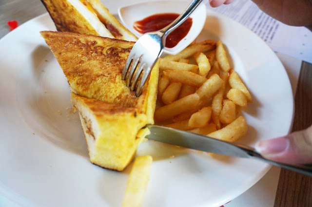 而充滿特色而厚實的花生醬火腿乳酪黃金厚片,賣相上就相當征服人心了。