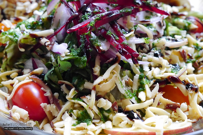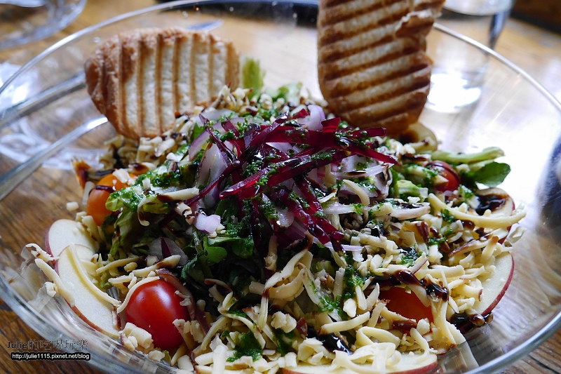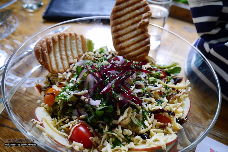 ↑沙拉用的配料很豐富,有甜菜根、蘋果、小番茄、生菜、起司