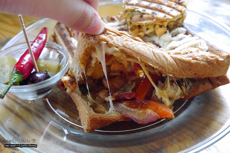 ↑因為是鐵板帕尼尼,所以內餡的牛肉是先炒過的。