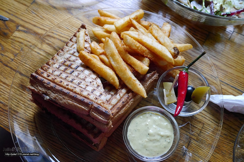 ↑除了生菜沙拉之外,也附了壓烤過的麵包,微酥的口感非常的討喜。