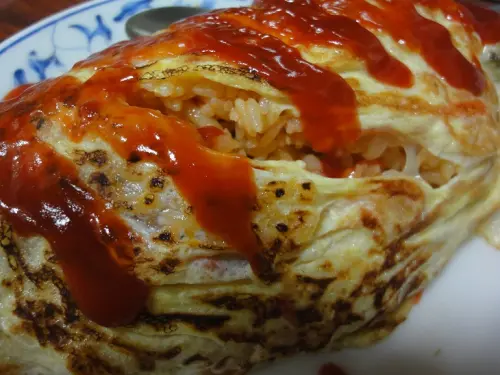 當番茄醬遇上煎的嘟嘟好的蛋皮~