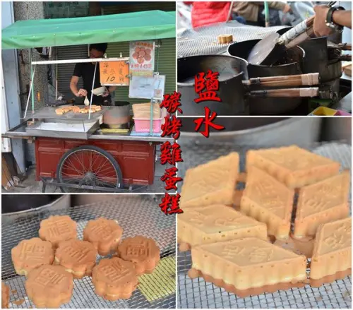炭火阿伯的雞蛋糕,在鹽水可是名氣響噹噹的攤販喔!而且只有賣一早上,麵糊賣完就收工了,在地人也難擋這樣的美味炭烤雞蛋糕,所以大夥兒就默默地排了一小時的戰利品就是買了200元,雖然有點誇張但是就真的很威~