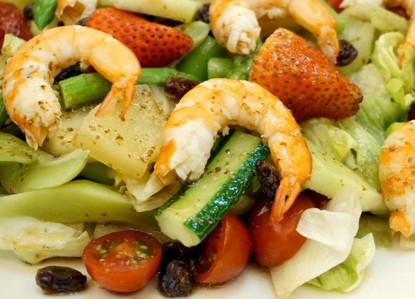 我還是第一次看過鮮蝦 配 草莓......這樣的奇妙組合