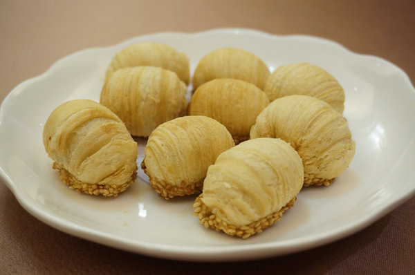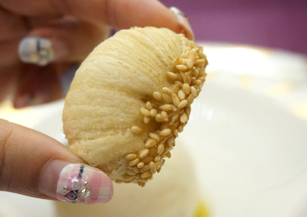 黃金千層酥咬下去一層一層的,後面的白芝麻入口後會散發出濃濃的芝麻香氣
