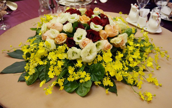 桌上擺的花籃很漂亮啊!! 感覺今天好像要來喝喜酒喔!!