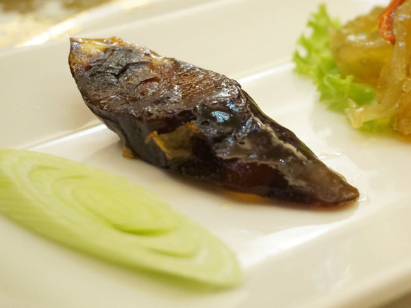 小小的一塊臘腸來開胃剛剛好! 吃起來不會太乾,配上海蜇皮很絕配喔