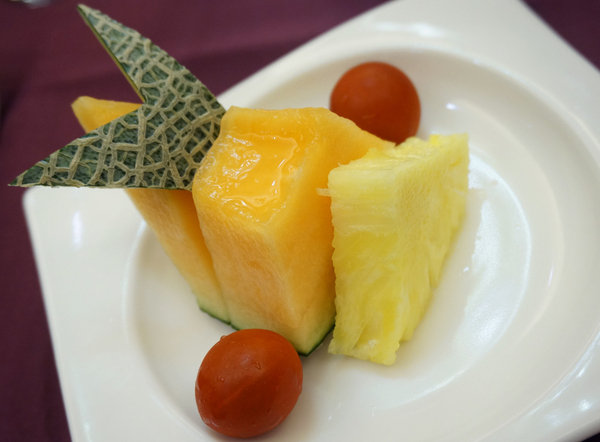 公關說,這道沙拉可是主廚精心設計過的,裡面搭配的水果都是當季的水果