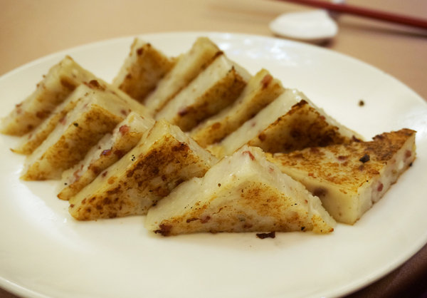 蘿蔔糕的餡料還算滿多的,每一塊都可以看到塊狀的臘肉還有香香的蝦米