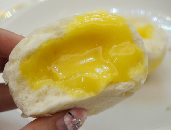 橘子爸每次吃點心都會點奶皇包,但是我還是第一次看到這種內餡會用噴的 !