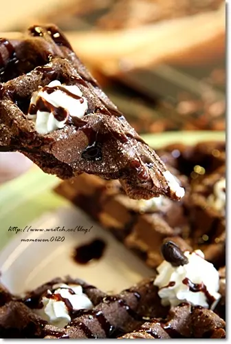 瓦芙上頭以鮮奶油取代馬茲卡朋起司,並灑上大量可可粉