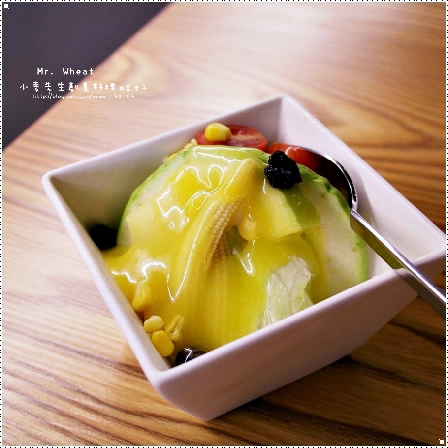 搭上那帶著百香果果香的沙拉醬冰冰涼量的很清爽!!
