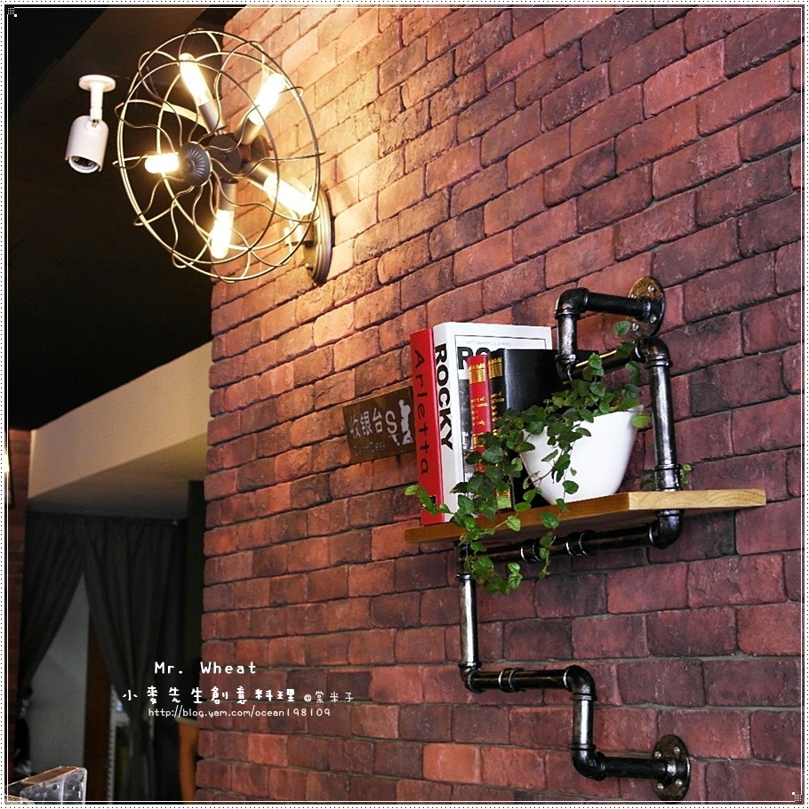 搭配磚瓦牆面和那用電風扇外框變成的創意燈飾,
