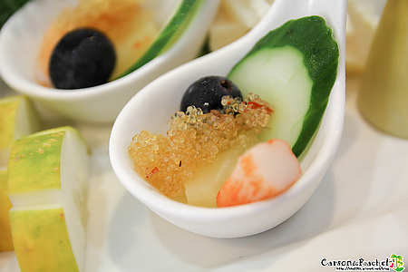 飛魚卵還蠻特別的,一口吃下飛魚卵搭配底下水果,非常清爽。