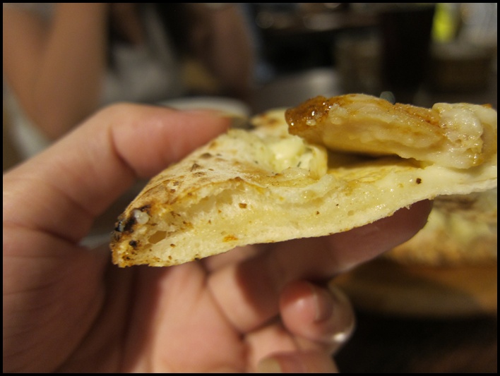 他們家的披薩皮挺好吃,在嘴巴裡頭咀嚼會有麵粉的香味,