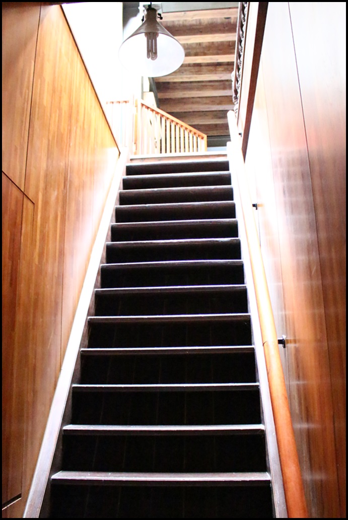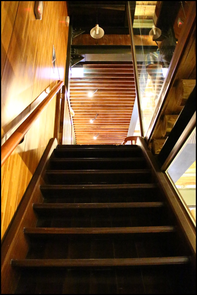 後方發現一道門,開了便可看見這往二樓的後方樓梯,要小心有點陡