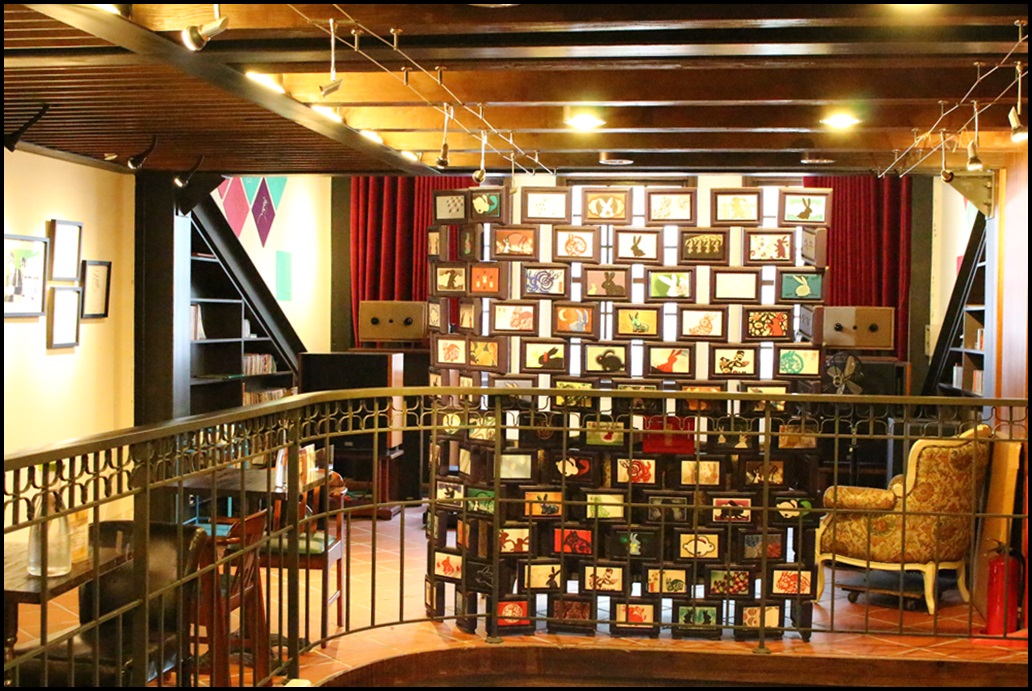 滿是兔子圖樣的屏風很吸睛,要喝咖非也可以選擇坐二樓品嚐