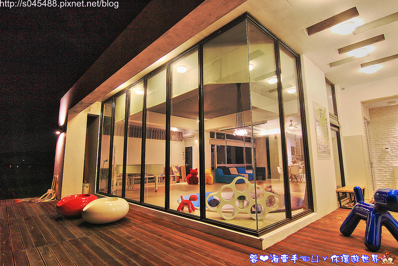 民宿內打亮了五彩斑爛的燈光更加吸引人