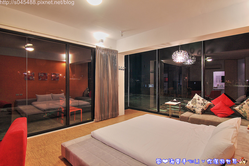 三層樓高,都採用大面積的落地窗,燈光照射讓房間內擺設明顯清楚,讓人更想入住一探究竟~ ▼