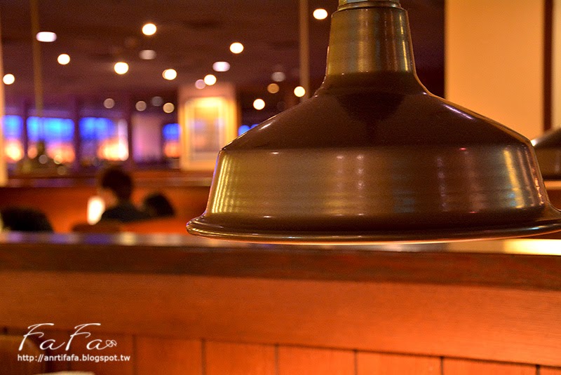 | 因為空間廣闊座位多,所以客人都集中在某一區用餐, 每個區塊小包廂空間長的都一樣,隔板都是單調木質材料不像Fridays那般有不同特色,顯得有些無趣。 |