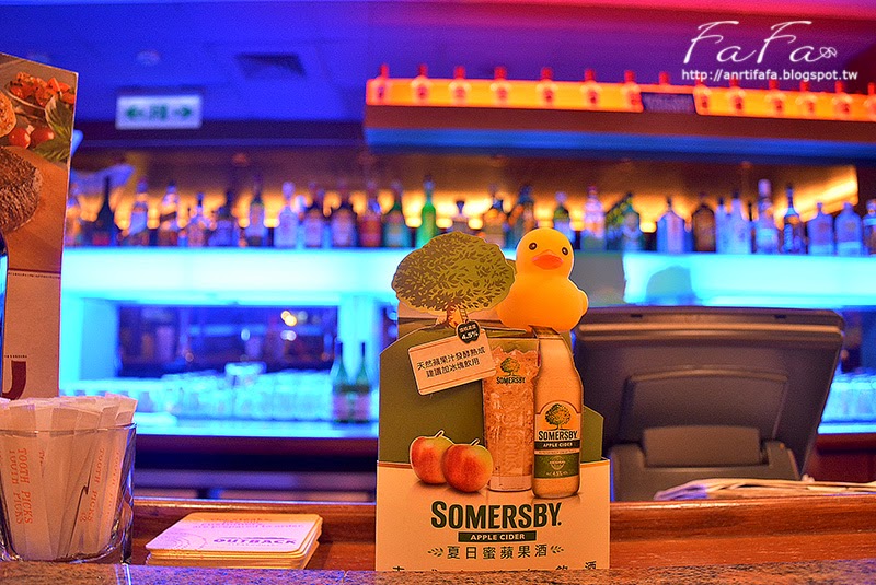 | 不管是吧檯或著是桌面上,都可以看到SOMERSBY夏日蜜蘋果酒的宣傳立牌, 但唯獨這款上方有黃色小鴨。(飲酒過量有礙健康) |