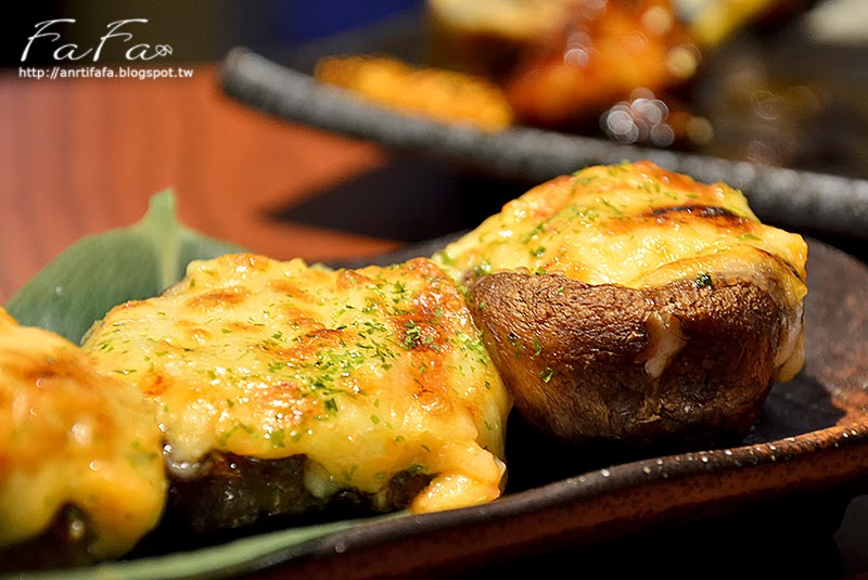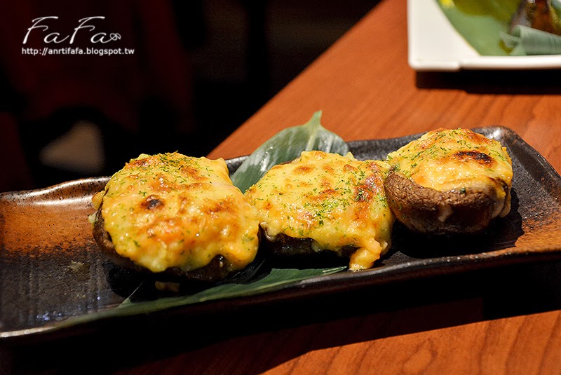| 香菇起司燒NT$120 表層起司,裡面有滿滿的明太子美奶滋醬,但我跟朋友覺得美奶滋份量太多, 吃起來有些負擔;香菇香氣明顯且柔軟。 |